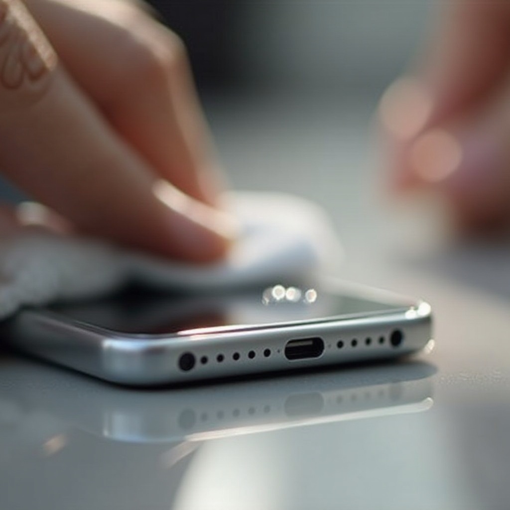 - ทำความสะอาดช่องชาร์จอย่างเบามือด้วยแปรงนุ่มหรืออากาศอัดเพื่อขจัดเศษ